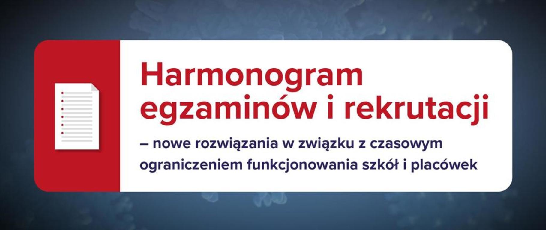 Harmonogram egzaminów i rekrutacji – nowe rozwiązania w związku z czasowym ograniczeniem funkcjonowania szkół i placówek