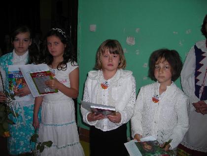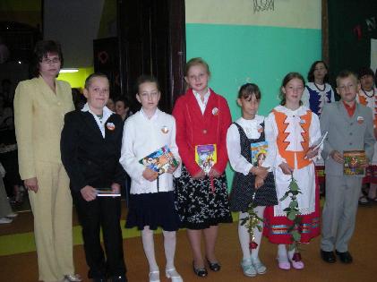 Uczniowie klasy II szkoły podstawowej nagrodzeni odznaką „Wzorowy Uczeń”: Kinga Grantze, Marianna Wiśniewska, Kinga Ptaszkiewicz, Dobrochna Makowska.