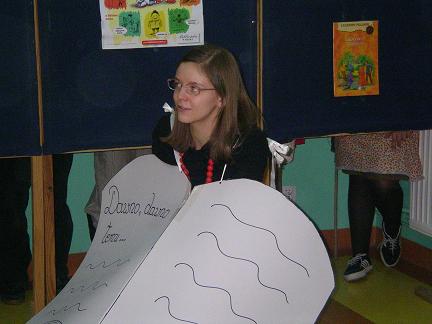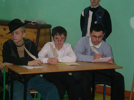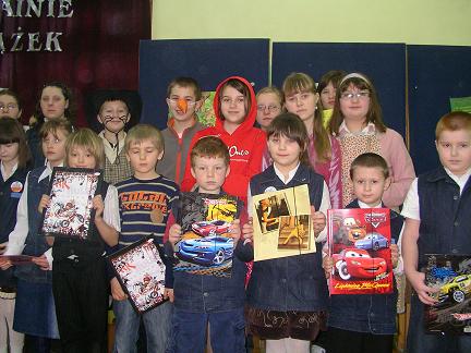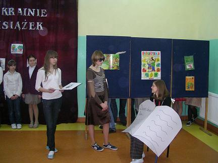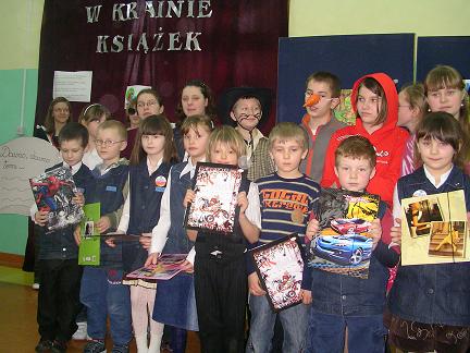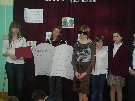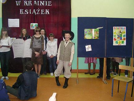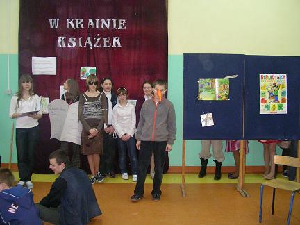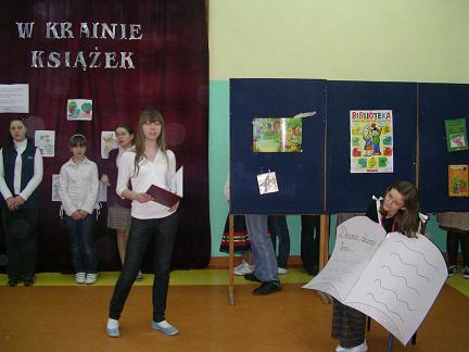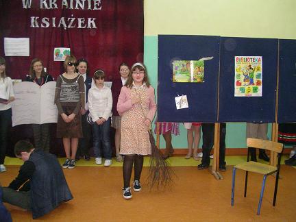 Dnia 26 lutego br. odbyło się w naszej szkole Pasowanie pierwszoklasistów na czytelników biblioteki szkolnej. Spotkanie owiane było aurą tajemniczości i zagadkowości. Przed uroczystym pasowaniem uczniów przez panią dyrektor Barbarę Rozwadowską odbyła się krótka inscenizacja, pt. „W krainie książek”. Przedstawienie przygotowali uczniowie klasy V i II b gimnazjum pod okiem pań bibliotekarek: Z. Polachowskiej i S. Głodek. Na uroczystość przybyły postacie z bajek, m.in. Jaś i Małgosia (D. Glaza i K. Leszmann), Szewczyk Dratewka (A. Mąkosa), Kopciuszek (P. Trela), Czerwony Kapturek (P. Grantze), Sierotka Marysia ( D. Pawłowska ), Pinokio (B. Pniewski), Kot w butach (A. Lisek),Rybak (Sz. Czapski), mądra Sowa (A. Wróbel); nie zbrakło również starych, mądrych Ksiąg, które zdradzały tajniki swej długowieczności, skarżąc się nieco na złe traktowanie przez czytelników (A. Armatowska i A. Bronk). Młodych czytelników do zaczarowanego świata książki zapraszała prowadząca całą uroczystość –K. Winkelmann. Po złożeniu przyrzeczenia pierwszaki dostały pamiątkowe teczki i z zadowolonymi buziami poszły wypożyczyć swoje pierwsze książki. Szczęśliwe i zadowolone, wraz za swoimi zdobyczami- książkami, wróciły do klasy.
