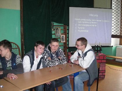 Z kilkudniowym opóźnieniem uczniowie naszej szkoły witali Wiosnę.1 kwietnia – w dzień żartów i kawałów – odbyło się przedstawienie pt. „Czary – mary” przygotowane przez uczniów kl. I b gimnazjum. W rolę czarownic wcieliły się Kalina Bogun i Marcelina Golińska a ich córkami były: Paskudia – Kinga Drywa, Ochydia - Anna Mania. Uczniami byli: Łukasz Swobodziński, Karolina Ciemińska, Dawid Gdański, woźny – Karol Wanta. Przedstawienie opowiadało w zabawny sposób o perypetiach młodych wiedźm, które nie chciały czynić zła i za karę zostały wysłane przez matkę i ciotkę do ludzkiej szkoły. Korzystając ze swoich czarów pomogły uczniom uwierzyć w siebie i pokonać trudności związane z nauką tabliczki mnożenia.