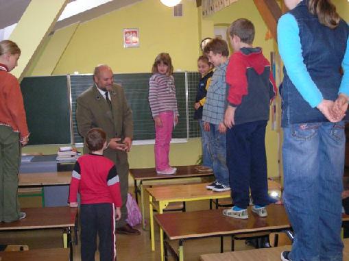 Uczniowie szkoły podstawowej spotkali się z leśniczym p. Leszkiem Armatowskim, który opowiedział im o zagrożeniach związanych z nieodpowiedzialnym zachowaniem w lesie oraz o zachowaniu się w przypadku nagłej gwałtownej zmiany pogody czy spotkania groźnej zwierzyny.