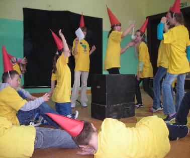 7 kwietnia 2009 r. uczniowie klas IV – VI szkoły podstawowej brali udział w warsztatach teatralnych prowadzonych przez grupę teatralną „Bez Masek” z Ogniska Pracy Pozaszkolnej w Starogardzie Gd. Zajęcia zostały przeprowadzone w ramach realizowanego przez grupę projektu „Jestem ze wsi, lubię siebie oraz swoje miejsce zamieszkania.” /Program grantowy „Młodzież w działaniu”/. Organizatorzy warsztatów od dawna interesują się teatrem i wiedzą, iż na wsi dostęp do tego typu zajęć jest ograniczony. Część z osób prowadzących pochodzi również z rejonów wiejskich i zna problemy związane ze spędzaniem czasu wolnego.
