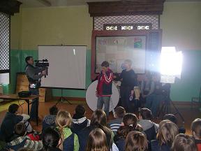Pod takim hasłem dnia 19 marca bieżącego roku odbył się w naszej szkole „Dzień z mediami”, który rozpoczął się wspólną akcją czytania „Cała szkoła czyta”. Po wspólnej wyprawie w krainę książki cała społeczność szkolna wzięła udział w prelekcji przygotowanej przez Zespół Redakcyjny „Spółdzielcza Jedynka”. Osoby zaproszone przybliżyły uczniom tajniki pracy w telewizji i zaprezentowały sprzęt, służący do nagrań prostych audycji telewizyjnych oraz zaprezentowały na „żywo” rodzaje planów filmowych, stosowane światła podczas nagrań i wywiadów. Popularnością na widowni cieszyły się wierszyki łamiące języki, z którymi zmagają się osoby występujące publicznie. Wśród nas nie zabrakło osób odważnych ,które chciały rozgrzać swoje aparaty mowy i nie wstydziły się wystąpić publicznie. Na zakończenie uczniowie z klasy II b zaprezentowali przedstawienie „Sumińskie Wiadomości”, zachęcające do rozważnego korzystania z dobrodziejstw telewizji i zdobyczy cywilizacyjnych. Podsumowaniem tematyki poruszanej w czasie „Dnia z mediami” było uczestnictwo w warsztatach filmowych, na które wybraliśmy się 23 marca do starogardzkiego kina „Sokół”. Było naprawdę warto uczestniczyć w niecodziennej lekcji „Filmowe ABC” prowadzonej przez aktorkę M. Kisło i obejrzeć projekcję, trzymającego w napięciu, filmu „Next”.