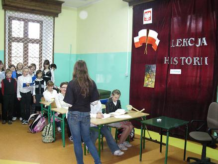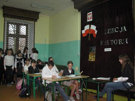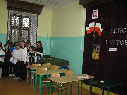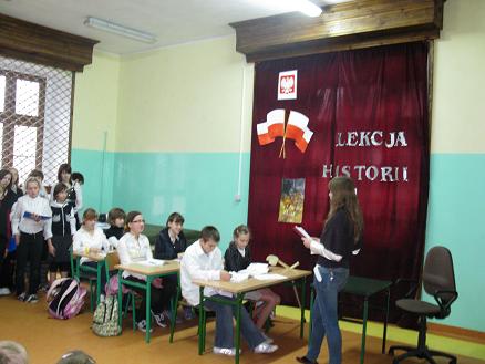 Święto Odzyskania Niepodległości -najważniejsze polskie święto narodowe związane z odzyskaniem w 1918 roku, po 123 latach zaborów, niepodległości obchodzone było w naszej szkole dnia 10 listopada 2009r. Tego dnia od rana panował wyjątkowy nastrój. Na pierwszej i drugiej godzinie lekcyjnej uczniowie naszej szkoły uczestniczyli w montażu słowno –muzycznym przygotowanym przez uczniów klasy VI i III b gimnazjum pod okiem pań: Zofii Polachowskiej i Sławomiry Głodek.