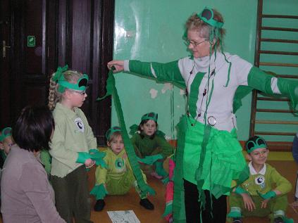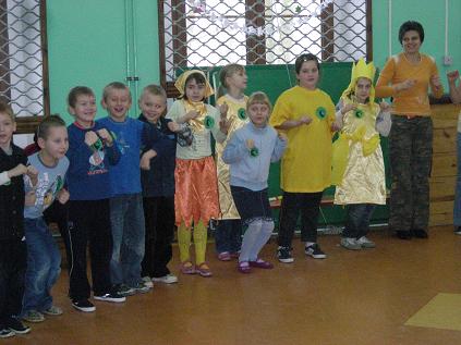 Uczniowie zostali podzieleni na 4 grupy, każda w innym kolorze. Każda grupa wykonywała zadania związane ze swoją barwą np. układanie menu z warzyw i owoców w wylosowanym dla grupy kolorze jak również przedstawianie jakie wartości odżywcze mają składniki ich potraw. Kolejnym działaniem było wykonanie stroju w danym kolorze. W tekście opowiadania pojawiały się opisy wartości odżywczych warzyw i owoców, ciekawostki dotyczące ich wpływu na zdrowie, pochodzenia.