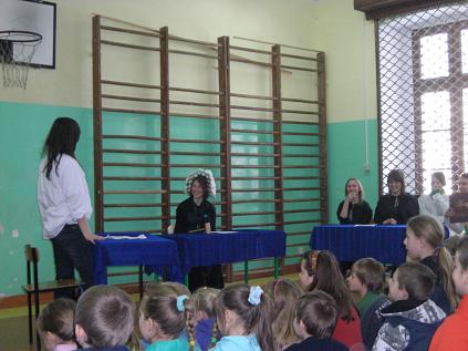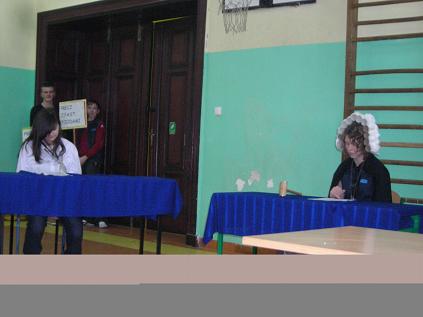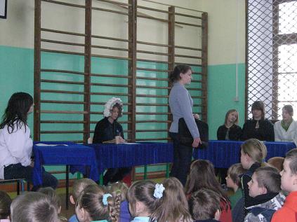 Uczniowie klas IV – VI i I – III gimnazjum brali udział w roli obserwatorów w „Rozprawie nad fast foodami”. Oczywiście wyrok dla przedstawiciela barów szybkiej obsługi był skazujący tj. nakazano zmianę proponowanego menu na zdrową żywność tj. owoce i warzywa. Aktorami byli uczniowie klas II gimnazjum.