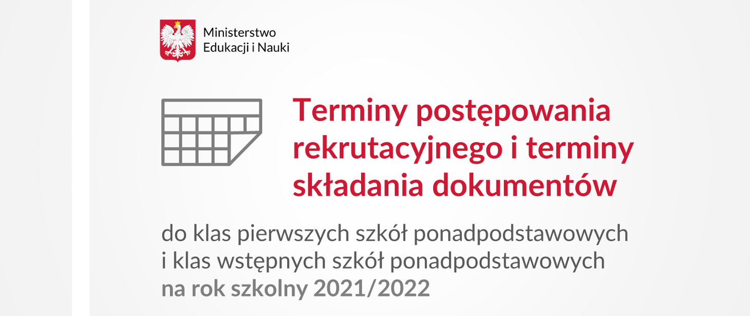 Terminy postępowania rekrutacyjnego na rok szkolny 2021/2022 do klas pierwszych szkół ponadpodstawowych i klas wstępnych szkół ponadpodstawowych