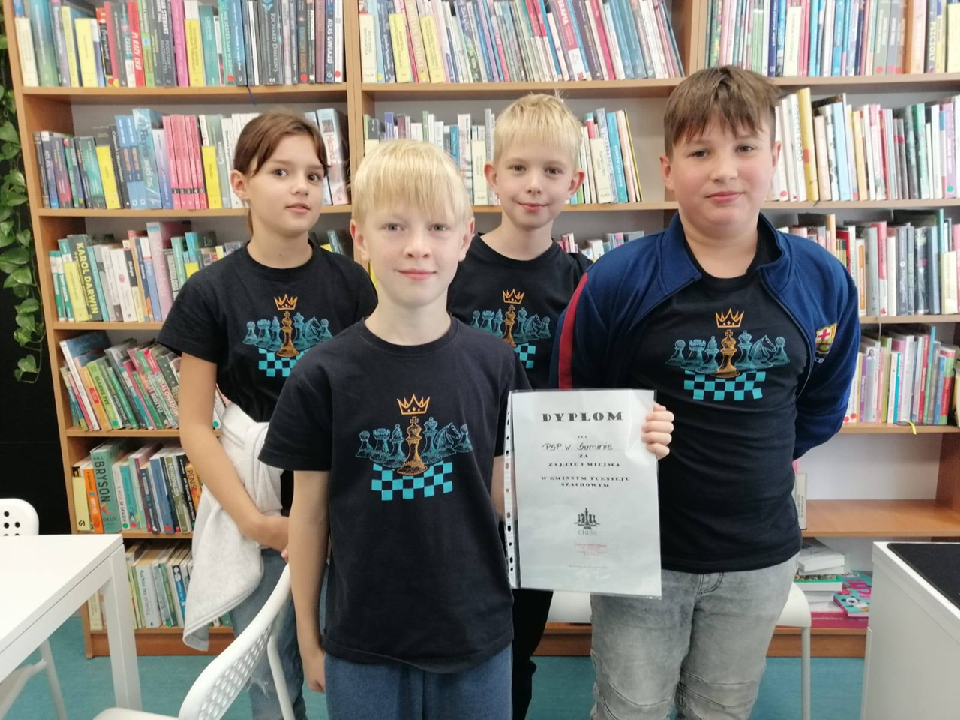 Nasi uczniowie zostali Mistrzami Gminy w Szachach Drużynowych. Skład grupy starszej: Agata Gmer, Jasiu Bobkowski, Tymek Jakusz i Florian Gunther. Grupa młodsza: Marta Kosidowska, Tymek Gornowicz, Oliwier Ciesielski i Franek Karbowski. Gratulacje!!! W czwartek powalczą na zawodach powiatowych. Trzymamy kciuki.