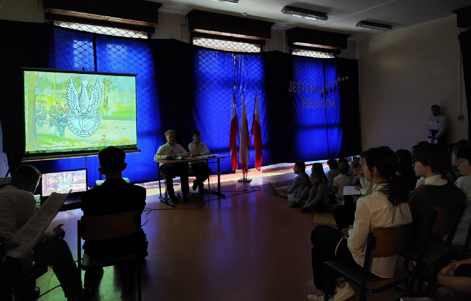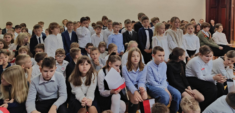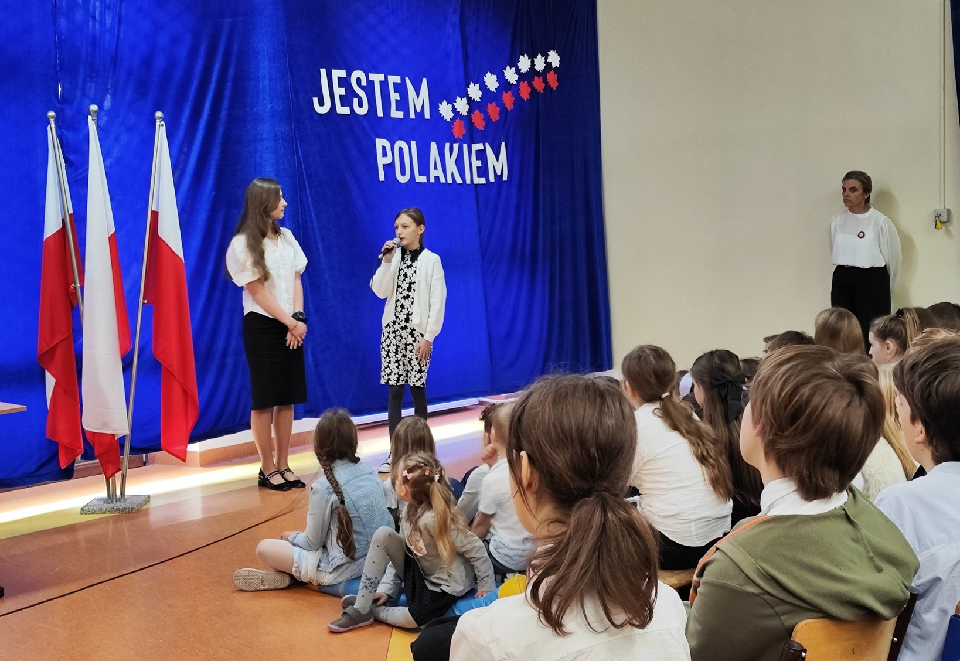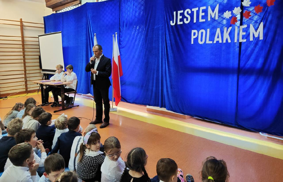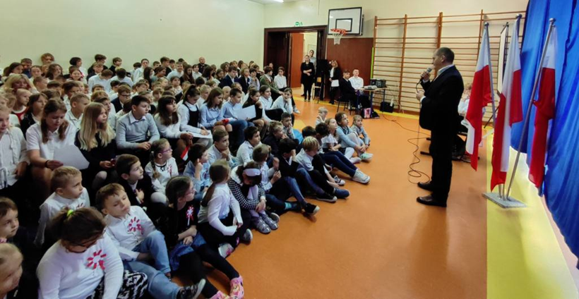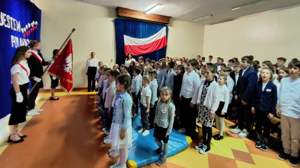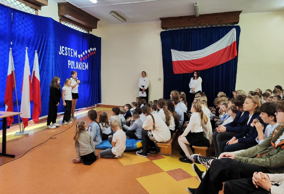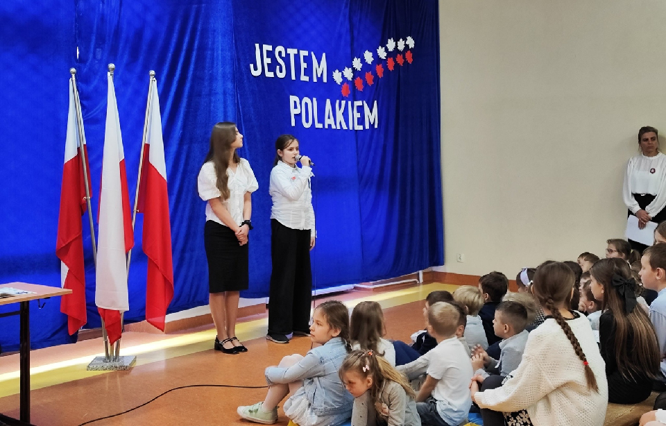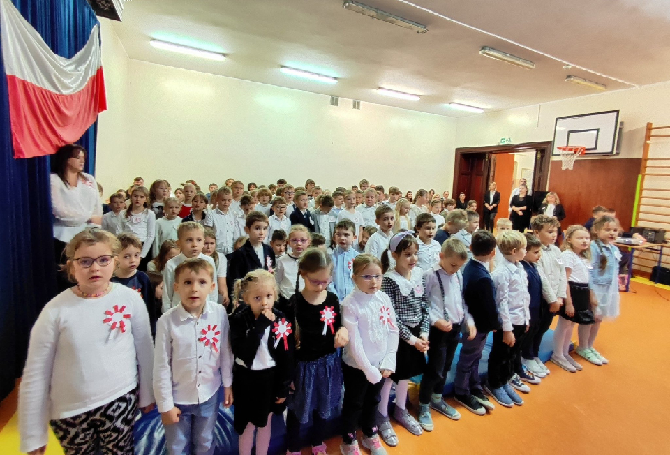 Młodsi uczniowie również włączyli się w obchody, prezentując piękne pieśni patriotyczne, które doskonale wplotły się w przebieg akademii, nadając jej wyjątkowy, podniosły charakter.