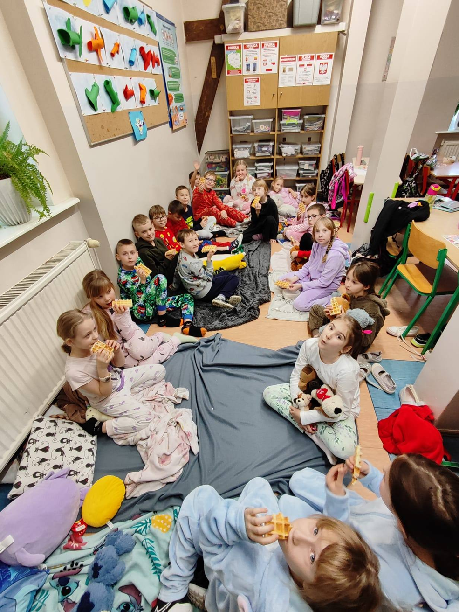 Uczniowie świętowali również Dzień Piżamy – było kolorowo, miękko i bardzo przytulnie. Najbardziej fantazyjne piżamy zdecydowanie przyciągały wzrok!