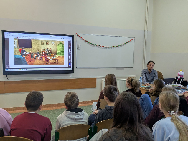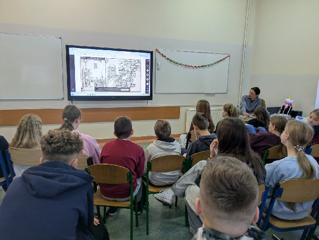 Mieliśmy również ogromną przyjemność gościć pana Tomasza Plaskowskiego – autora i ilustratora, który podzielił się z nami swoją pasją, opowiedział o procesie twórczym i pokazał, jak rodzą się ilustracje. Spotkanie było niezwykle inspirujące i pełne ciekawostek!