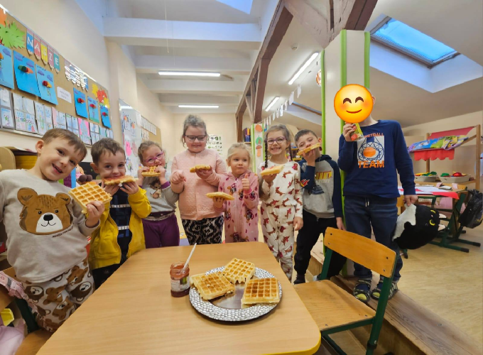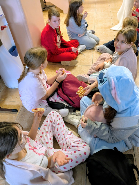 Nie zabrakło także słodkiej niespodzianki – gofrów, które dodawały energii przez cały dzień. Zapach unosił się po całej szkole!