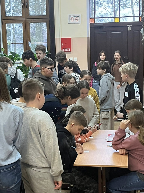 i przepytywali innych uczniów oraz chętnych nauczycieli z tabliczki mnożenia. Każdy, kto podjął wyzwanie, mógł sprawdzić swoje umiejętności i zdobyć tytuł mistrza mnożenia