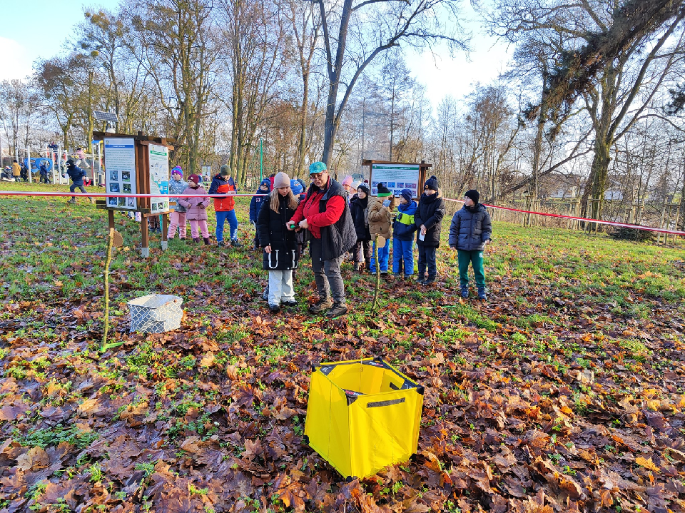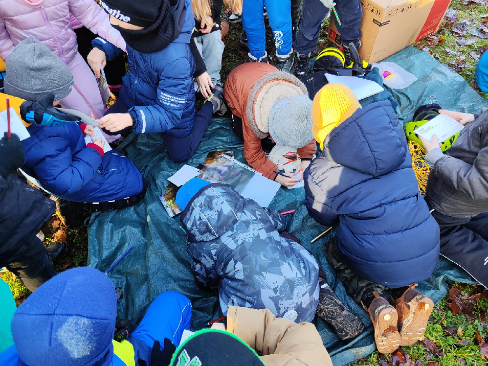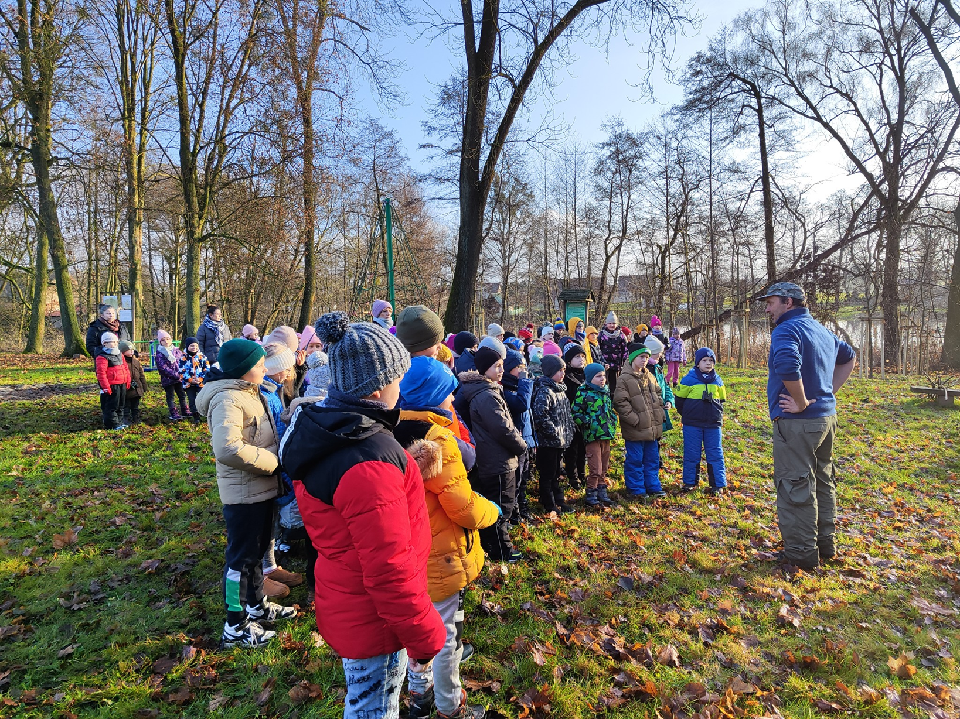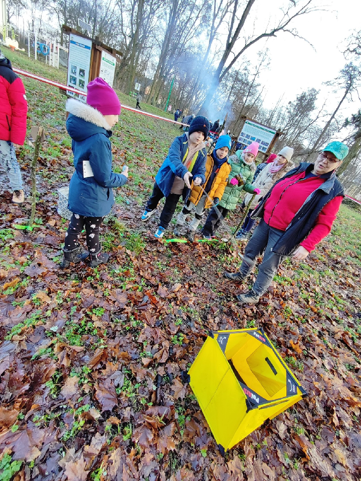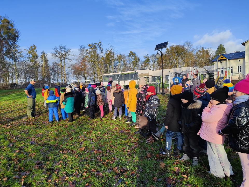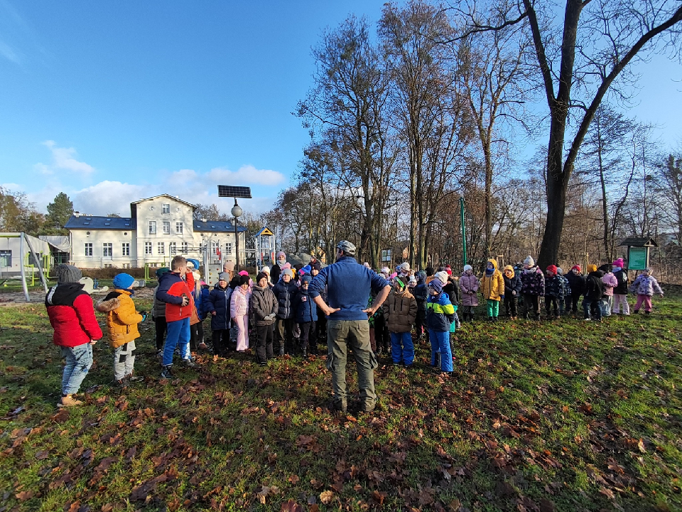Na szkolnym boisku odbyły się warsztaty terenowe, które poprowadzili zaproszeni specjaliści — ornitolog/dendrolog. Dzięki nim dzieci mogły z bliska poznać fascynujący świat ptaków oraz drzew, dowiadując się m.in. jakie gatunki występują w naszym otoczeniu, czym się różnią i dlaczego są tak ważne dla ekosystemu.
