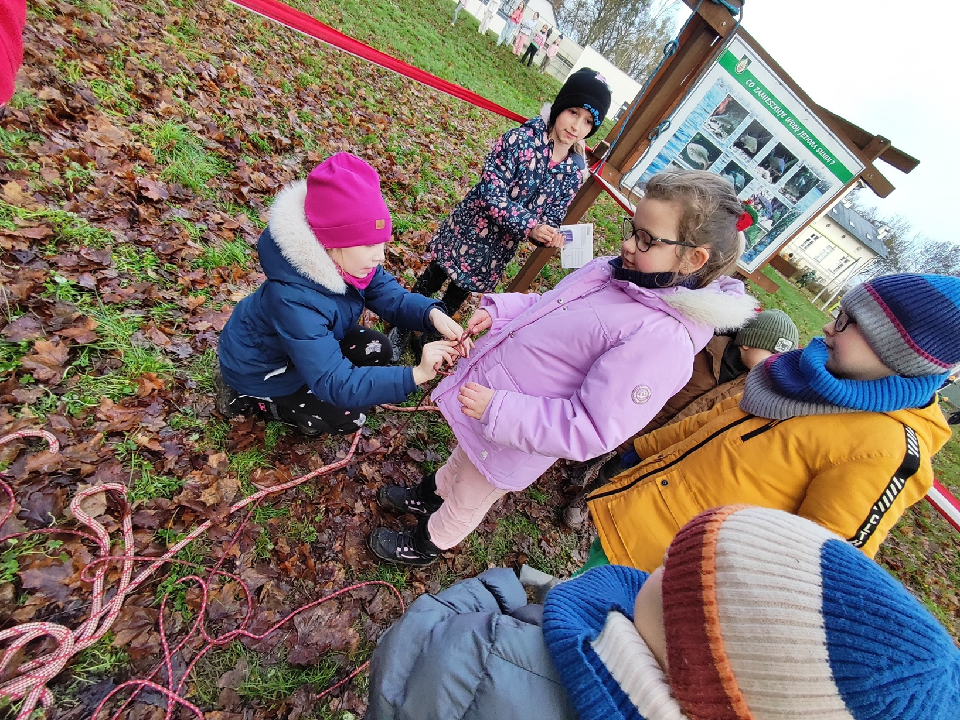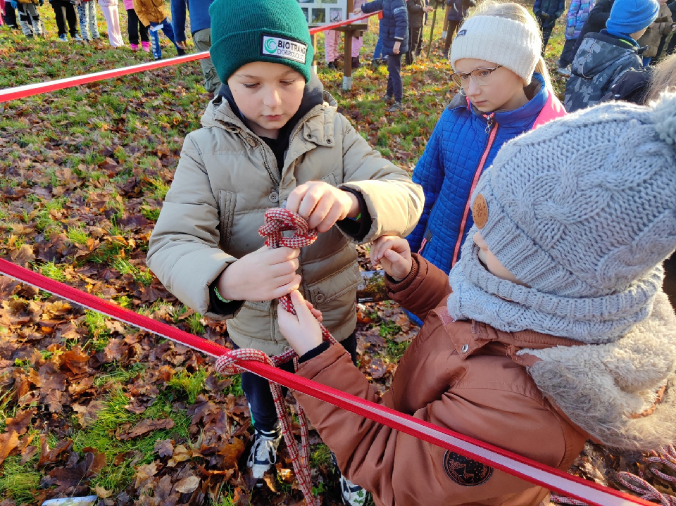Organizatorzy przygotowali dla uczniów kilka tematycznych stacji. Każda z nich łączyła elementy nauki i aktywności praktycznej. Dzieci próbowały swoich sił w wiązaniu różnych rodzajów węzłów, uczyły się rozpoznawania drzew po liściach, korze, a także odkrywały, że z wielu roślin można przygotować naturalne produkty — takie jak syropy, napary czy herbaty.
