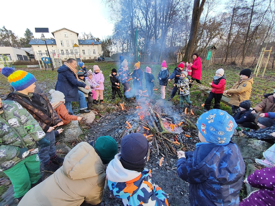 Warsztaty były nie tylko źródłem wiedzy, lecz także okazją do integracji. Zwieńczeniem spotkania było wspólne ognisko, przy którym uczniowie samodzielnie piekli kiełbaski, rozmawiali i dzielili się wrażeniami z zajęć na świeżym powietrzu.