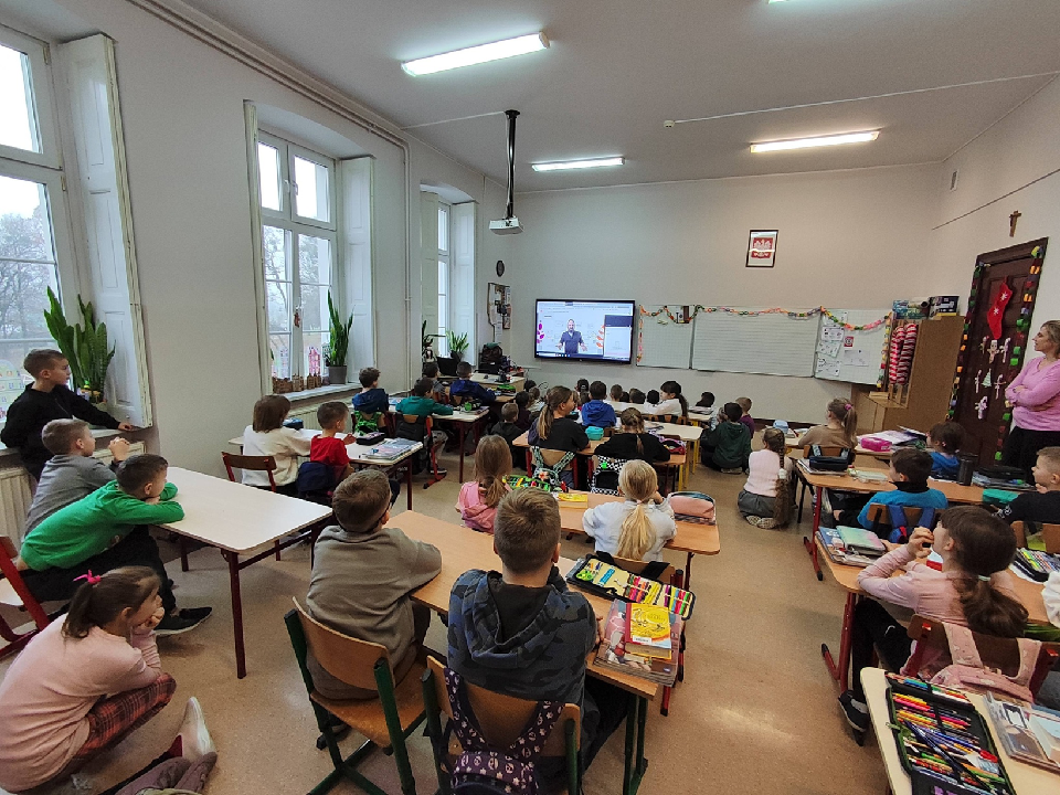 Dziś uczniowie wzięli udział w warsztatach online z Fundacja Dajemy Dzieciom Siłę, poświęconych tematowi niebezpiecznych kontaktów w internecie. Podczas spotkania dzieci (7–9 lat) dowiedziały się, jak rozpoznawać zagrożenia w sieci, jak reagować na niepokojące sytuacje oraz gdzie szukać pomocy. Warsztaty miały na celu kształtowanie bezpiecznych i odpowiedzialnych postaw podczas korzystania z internetu.