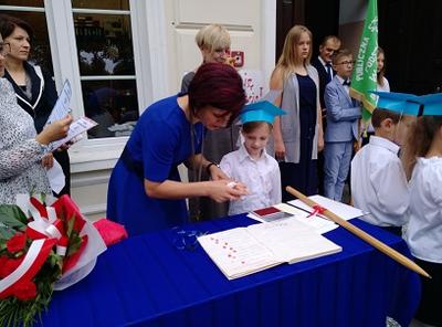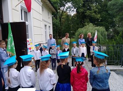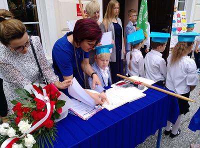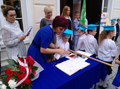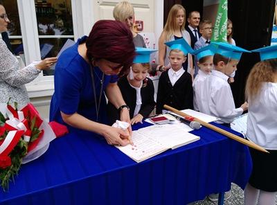 2 września w PSP w Suminie miała miejsce uroczysta inauguracja roku szkolnego 2019/2020. W tym roku po raz pierwszy uroczystość rozpoczęcia roku szkolnego została połączona z pasowaniem na ucznia i ślubowaniem uczniów klasy I SP. Najmłodsi zostali włączeni w poczet uczniów naszej szkoły, co przypieczętowali odbiciem palca wskazującego w zeszycie ślubowań. Po uroczystości starsze klasy udały się na spotkanie ze swoimi wychowawcami, zaś uczniowie klasy pierwszej świętowali udając się wraz z wychowawcą klasy, gronem pedagogicznym i rodzicami na słodki poczęstunek.