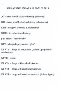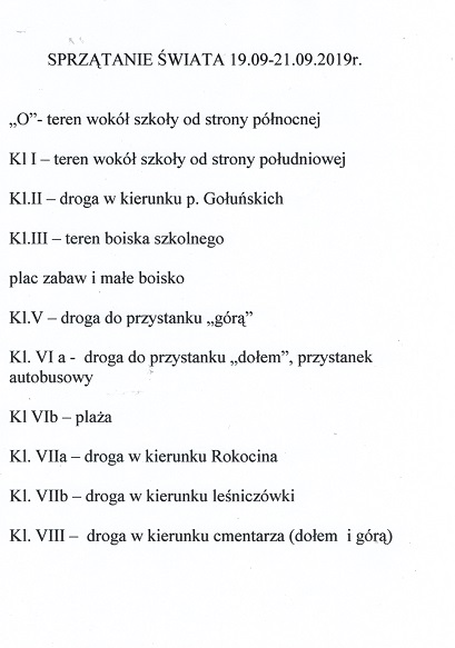 Dnia 20 września uczniowie klasy VIII wraz z wychowawcą uczestniczyli w akcji sprzątania świata. Z wielkim zaangażowaniem sprzątali drogę w kierunku cmentarza. Dzięki nim fragment naszej miejscowości stał się bardziej czysty, a przez to też piękniejszy.
