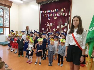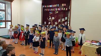 Ten dzień nasi najmłodsi uczniowie zapamiętają na pewno na długo z dwóch powodów: po pierwsze 20 września obchodzony jest Dzień Przedszkolaka, po drugie sama uroczystość pasowania jest dla każdego dziecka ważnym i niezwykle emocjonującym wydarzeniem. W naszej szkole ten dzień był wyjątkowy- pięknie przystrojona sala gimnastyczna, odświętnie ubrane przedszkolaki w kolorowych biretach, przejęci rodzice i dumne panie wychowawczynie: Dorota Wetta, Emilia Ronczkowska i Monika Świerkowska. Do tego wszystkiego przepiękny program artystyczny w wykonaniu naszych milusińskich, a potem uroczyste pasowanie wielkim ołówkiem przez panią Dyrektor, pamiątkowe dyplomy, słodkie niespodzianki i inne atrakcje dla naszych milusińskich. Oczywiście na koniec uroczystości był też słodki poczęstunek przygotowany przez rodziców przedszkolaków. Cała uroczystość była niepowtarzalna, co na 100% potwierdzą obecni na niej widzowie. Na dowód tego umieszczamy piękną fotorelację oraz filmy (zakładka filmy na stronie szkoły) z części artystycznej.