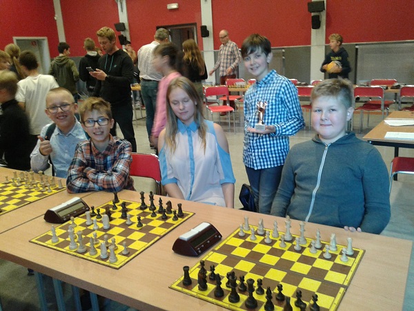 Kolejny sukces naszych zawodników- szachistów! Na półfinałach wojewódzkich w szachach drużynowych zespół w składzie: Jasiu Joniec, Wojtek Ciemiński, Roksana Glaza, Staś Pliszka i Dawid Gabryel wywalczył III MIEJSCE! Niestety, miejsce na podium nie zapewniło nam udziału w finale wojewódzkim, gdyż do tych zawodów zakwalifikowała się tylko drużyna, która zajęła I miejsce. Mimo wszystko jesteśmy bardzo dumni z naszych młodych zawodników i będziemy im kibicować w kolejnych zawodach.