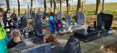 W ramach akcji "Szkoła pamięta" przedstawiciele Samorządu Uczniowskiego naszej szkoły porządkowali groby na cmentarzu parafialnym w Suminie. Młodzież zapaliła znicze w dowód pamięci o cenionych przodkach w swojej lokalnej społeczności. Uczniowie klasy pierwszej poznali historię księdza Reginalda Krzyżanowskiego, bohaterskiego proboszcza parafii w Suminie, zamordowanego przez hitlerowców w październiku 1939 roku w Lesie Szpęgawskim i zapalili znicze pod tablicą pamiątkową znajdującą się na ścianie kościoła.