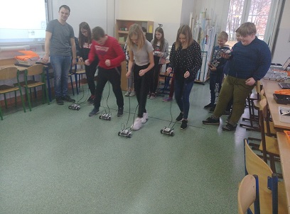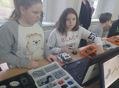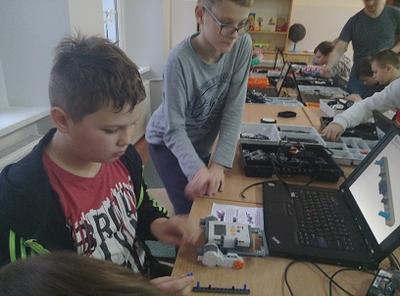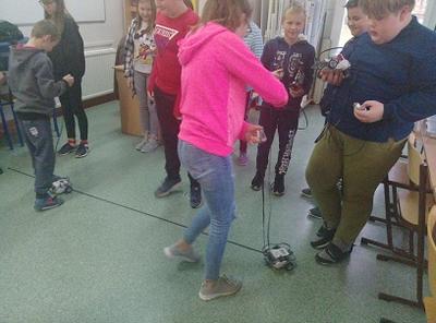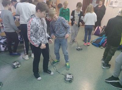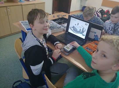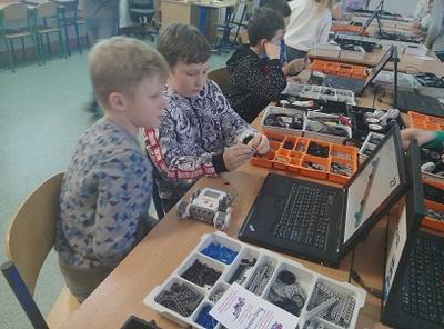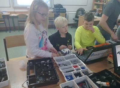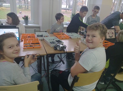W dniu 13 listopada uczniowie klas V-VIII, dzięki inicjatywie pani Emilii Ciesielskiej, uczestniczyli w zajęciach pokazowych z robotyki. Zajęcia prowadził pan Paweł Plis, który na codzień zajmuje się robotyką i programowaniem z wykorzystaniem rozwiązań Lego Edukation. Na zajęciach pokazowych zadaniem uczniów było zbudowanie pojazdu- robota na podstawie instrukcji podanych na laptopie i zaprogramowanie go. Dzieci pracowały z wykorzystaniem klocków lego mindstorms. Lego Mindstorms Education daje możliwość rozwijać się w dziedzinach STEM (Science, Technology, Engineering, Mathematics), a także poszerzać znajomość języków obcych oraz obszarów humanistyki. Uczniowie mieli okazję tego doświadczyć. Zajęcia cieszyły się ogromnym zainteresowaniem niezależnie od grupy wiekowej uczniów. Poprzez uczestnictwo w zajęciach uczniowie rozwijali sprawność manualną, logiczne myślenie, umiejętności matematyczne. Zabawa klockami okazała się świetnym sposobem na naukę fizyki, techniki, rozwijanie kompetencji językowych a także umiejętności współpracy w grupie. To była niesamowita lekcja informatyki. Zajęcia pokazały, że nauka może być również świetną zabawą. Dziękujemy panu Pawłowi za super zabawę i naukę. Mamy nadzieję, że to nie było nasze ostatnie spotkanie z robotami zbudowanymi z klocków lego.