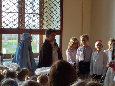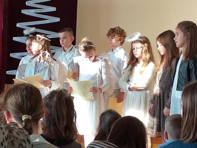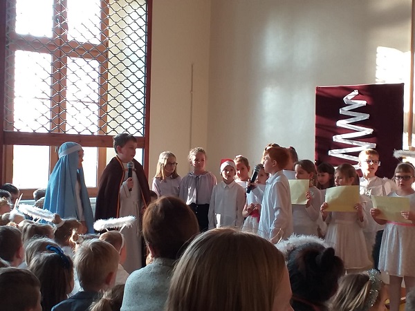 W ostatnim dniu przed przerwą świąteczną w naszej szkole odbyły się Jasełka. Przygotowali je uczniowie klas młodszych wraz z wychowawcami. Tegoroczne jasełka wprowadzały nas w świąteczny nastrój przede wszystkim poprzez kolędy, które śpiewaliśmy zgodnym chórem wspólnie z całą społecznością szkoły. Po tym szkolnym jasełkowaniu uczniowie rozeszli się do klas na Wigilie klasowe, które jak co roku przygotowali wspólnie ze swoimi wychowawcami. Po podzieleniu się opłatkiem i skonsumowaniu przygotowanych potraw wszyscy w świątecznych nastrojach udali się na niecierpliwie oczekiwany świąteczny wypoczynek w rodzinnym gronie.