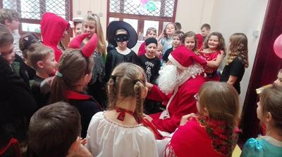 W tym radosnym dniu bawili się nasi uczniowie na 3 balach zorganizowanych według kategorii wiekowych: punkt prtzedszkolny i oddział przedszkolny, klasy I-III i starsi uczniowie. Na balu były piękne stroje, oryginalne tańce, konkursy oraz tradycyjne spotkanie ze Św. Mikołajem. Sami zobaczcie, jak było pięknie- wręcz baśniowo, kolorowo i wesoło...