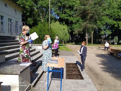 W piątek 26 czerwca zakończyliśmy rok szkolny. Dla nas wszystkich był to rok trudny ze względu na pandemię koronawirusa i konieczność przejścia, decyzją ministra MEN od 25 marca, na nauczanie zdalne. Daliśmy radę. Każdy z nas dał z siebie wszystko, aby nauczanie na odległość przebiegało sprawnie i bez zakłóceń. Dzięki zaangażowaniu Rodziców, nauczycieli, uczniów mogliśmy zrealizować podstawę programową, a na zakończenie cieszyć się wspaniałymi wynikami na świadectwach. W tym roku, ze względu na pandemię, zakończenie roku szkolnego miało nieco inną formułę. Przede wszystkim nie odbywało się tak uroczyście, jak zwykle. Poza tym uroczystość przebiegała w warunkach reżimu sanitarnego. Pogoda dopisała, dzięki czemu mogliśmy pożegnać rok szkolny na powietrzu w pięknym otoczeniu naszej szkoły. Wszyscy stęskniliśmy się za jej murami. Życzymy sobie, abyśmy mogli wrócić do szkoły i rozpocząć od września naukę w systemie stacjonarnym. Wszystkim Rodzicom, uczniom i nauczycielom życzymy przyjemnego, w tym roku szczególnie zasłużonego, odpoczynku i pięknej pogody na wakacje. Nie zapominajmy o przestrzeganiu zasad bezpieczeństwa podczas letniego wypoczynku i pamiętajmy, że stan epidemiologiczny ciągle trwa. Bezpiecznych i zdrowych wakacji! Poniżej umieszczamy link do prezentacji osiągnięć uczniów na koniec roku szkolnego. Zapraszamy do obejrzenia : https://drive.google.com/file/d/1OZEM7mORd73uD8f_DoxzlCuHHeLxM01q/view (skopiuj link i wklej do przeglądarki)