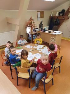 Naszej choineczce przydalo by się jeszcze kilka ozdób. Zrobimy je z dziećmi. Prosiłabym o przynoszenie brokatu, złotych gwiazdeczek i tym podobnych świecidełek do roziskrzenia naszych ozdob choinkowych.