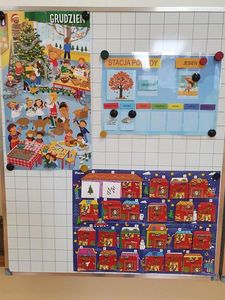 "Piszemy" list do św. Mikołaja. W sali zagościła już choineczka. Odliczamy dni do Świat Bożego Narodzenia za pomocą kalendarza adwentowego oraz obserwujemy pogodę w oczekiwaniu na śnieg.