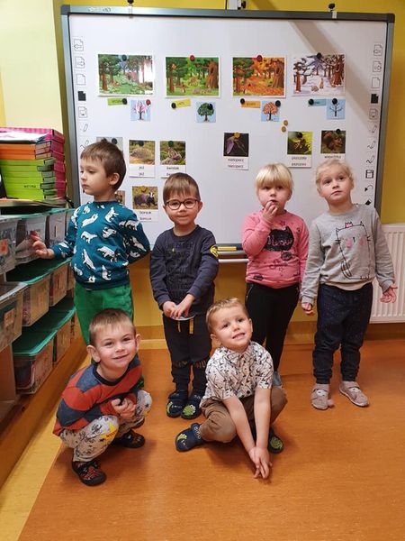 Poznajemy pory roku i zwierzęta, które zimią śpią oraz te które gromadzą zapasy. Robimy ,kołderkę' z lisci na zimowy sen dla jeża.