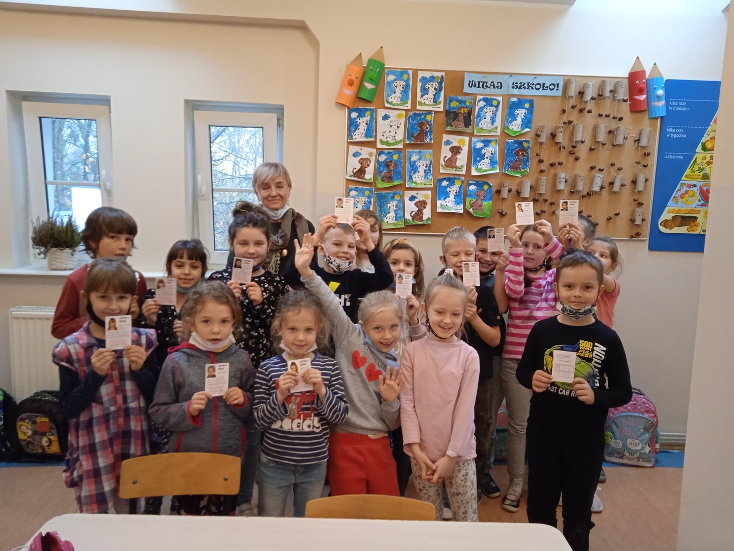 Dzisiaj dla uczniów klasy pierwszej był to bardzo ciekawy dzień. Na swoich zajęciach mięli przyjemność gościć Panią Dyrektor. Wspólnie rozmawialiśmy o "Prawdach dziecka", analizowaliśmy wiersz M. Brykczyńskiego pt. ” Prawa Dziecka” oraz wspólnie stworzyliśmy plakat, który zdobi naszą sale. Na zakończenie zajęć rozmawialiśmy jakie dokumenty mówią o tym kim jesteśmy- dowód osobisty. Z tej okazji z rąk Pani Dyrektor zostały rozdane pierwsze dokumenty tożsamości uczniów klasy pierwszej czyli, legitymacje szkolne.