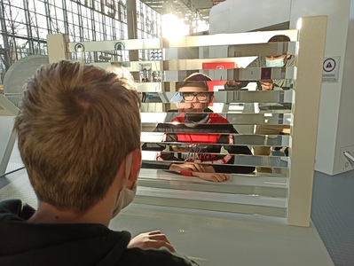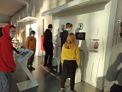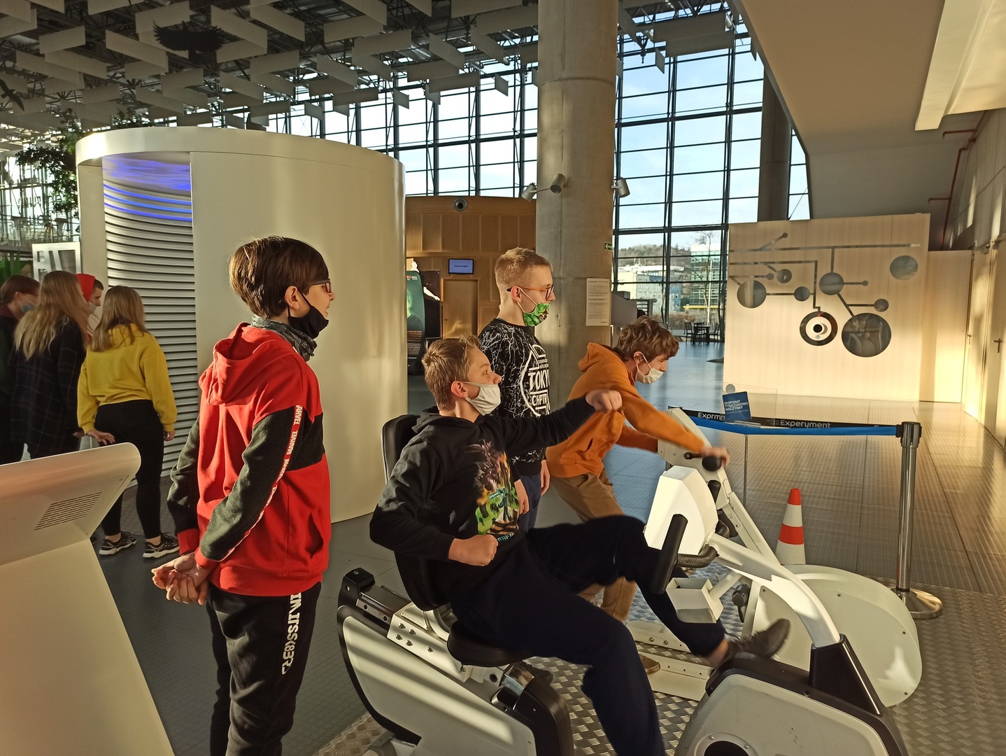 W Centrum Nauki Eksperyment obejrzeliśmy między innymi wystawy stałe, np.: Drzewo Życia, Wirtualny Świat Wynalazków Leonarda da Vinci. Było też auto, które pokazywało nam, jak jeździ się po spożyciu alkoholu. Chłopcom bardzo podobała się ściana sprawdzająca moc uderzenia.