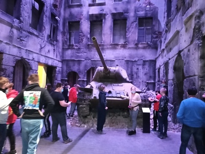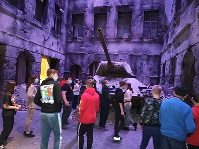 W Muzeum II Wojny Światowej również było bardzo interesująco. Poznaliśmy dużo nieznanych nam faktów dotyczących tego okresu. Panie przewodniczki opowiadały bardzo ciekawie. Widzieliśmy czołgi – rosyjski T-34 i amerykański „Szerman”, byliśmy też na pięknie zrekonstruowanej ulicy przedwojennego miasta. Szkoda, że zabrakło czasu na zwiedzenie wszystkich zakątków muzeum.