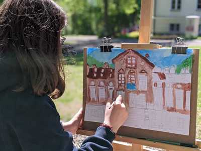 W słoneczną środę, w dniu 18 maja 2022 r. odbył się Gminny Konkurs Plastyczny "Stulecie przy sztaludze". Młodzi artyści pracowali w plenerze i znakomicie upamiętnili budynek naszej szkoły.