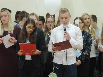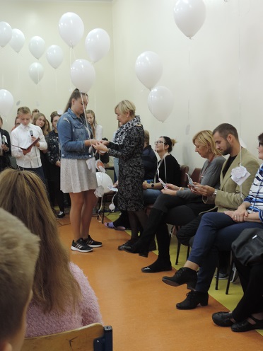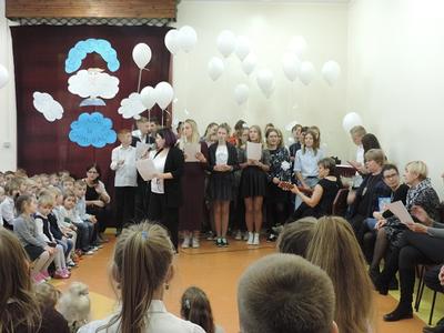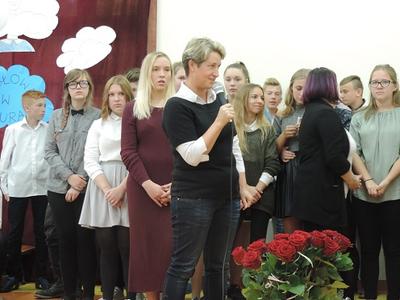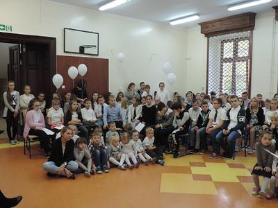 13.10.2017 w naszej szkole odbył się ,,Dzień Edukacji Narodowej''. W ciągu tego dnia miał miejsce koncert ,,Boliboka'' i uroczysty apel uczczony przez uczniów oraz wszystkich pracowników naszej placówki. Dzień Edukacji Narodowej to wyjątkowy dzień, w którym akcentujemy ważną rolę nauczycieli w zapewnianiu nam dobrego wykształcenia. Naszym zwyczajem jest już obdarowywanie nauczycieli drobnymi „upominkami''. W tym roku zadaniem każdej klasy i każdego ucznia było napisanie życzeń, bądź kilku miłych słów dla wybranego pracownika szkoły. Spotkanie rozpoczęły życzenia złożone przez uczniów. Podziękowali wszystkim oddanym pracy na rzecz oświaty oraz życzyli całemu personelowi mnóstwa sukcesów i zadowolenia z realizowanej pracy zawodowej. Potem wręczono baloniki wypełnione helem z przyczepionymi życzeniami w kształcie chmurek. Również przedstawiciele Rady Rodziców złożyli serdeczne podziękowania za naukę ich dzieci i wręczyli róże pracownikom szkoły. Po uroczystym „ Sto lat” wyśpiewanym przez uczniów wręczono nagrody i dyplomy wyróżniającym się sportowcom. Następnie odbyła się druga część uroczystości, czyli występ pana Leszka Boliboka, skrzypka i wybitnego, wieloletniego muzyka orkiestry Teatru Muzycznego w Gdyni. Było to nasze kolejne spotkanie z koncertmistrzem, który ma doskonały kontakt z dziećmi i młodzieżą. Wirtuoz wykonał gamę utworów muzycznych z różnych epok, prezentując przeróżne style muzyczne. Okazało się, że nasi uczniowie dobrze się wczuli w prezentowany repertuar, raźno nucili znane im melodie i klaskali do rytmu. Koncert był na pewno dla wszystkich bardzo miłą lekcją muzyki. Cały ten dzień był dla nas bardzo ujmujący. Mamy nadzieję, że się jeszcze takie powtórzą.