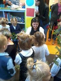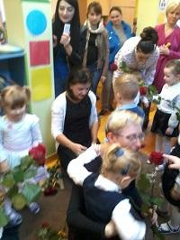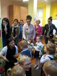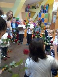 W ten wyjątkowy dzień dzieci z Punktu Przedszkolnego wraz z rodzicami przygotowały niespodziankę swoim paniom wychowawczyniom. Maluszki, z małą pomocą przybyłych na uroczystość mam i tatusiów, przywitały nauczycielki śpiewając tradycyjne „STO LAT”, po czym wręczyły Pani Dorotce i Pani Ani kwiaty oraz pamiątkowe albumy z pięknymi zdjęciami wychowanków. Panie były bardzo wzruszone i szczęśliwe. W dowód wdzięczności wyściskały i czule utuliły wszystkich milusińskich. Na koniec przedszkolaki udały się całą grupą z kwiatową delegacją do Pani Dyrektor oraz innych nauczycieli prowadzących zajęcia w grupie przedszkolnej. To był dzień pełen miłych wrażeń dla całej przedszkolnej społeczności.