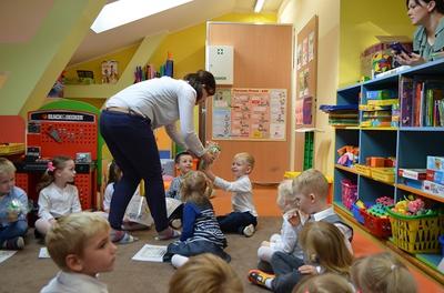 18.10.2017 roku to bardzo ważny dzień w życiu dzieci z Punktu i Oddziału Przedszkolnego- dzień pasowania na przedszkolaka. Najmłodsi uczniowie naszej szkoły w galowych strojach, mocno przejęci, zaprezentowali swoje umiejętności zdobyte w pierwszym miesiącu pobytu w przedszkolu przed rodzicami, nauczycielami i starszymi kolegami ze szkoły. Maluszki wypadły rewelacyjnie – recytowały wierszyki, śpiewały piosenki i tańczyły. Pokazały też swoją odwagę i kreatywność tworząc układ choreograficzny „na żywo”. Było miło i wesoło. Dumni rodzice oklaskiwali swoje pociechy i złożyli uroczyste przyrzeczenie, że będą często przytulać maluszki i pomagać w trudnych sytuacjach. Po uroczystym przyrzeczeniu, dzieci otrzymały pamiątkowe dyplomy pasowania na przedszkolaka od Pani Dyrektor a następnie udały się z rodzicami i paniami wychowawczyniami na słodki poczęstunek. W klasie przedszkolaczki zostały obdarowane przez szczęśliwych rodziców słodkimi tutkami. To był kolejny pełen pozytywnych wrażeń i poważnych doświadczeń dzień w przedszkolu. Sami zobaczcie jak było pięknie...