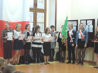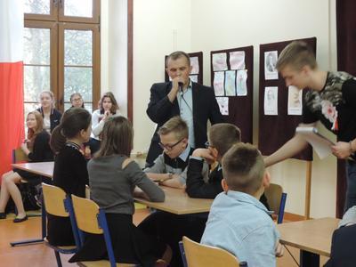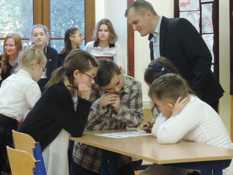 10 listopada kolejny raz obchodziliśmy w naszej szkole Narodowe Święto Niepodległości obchodzone w Polsce dla upamiętnienia odzyskania wolności po 123 latach zaborów. Po wysłuchaniu części artystycznej przygotowanej przez uczniów klas starszych, wzięliśmy udział w corocznym konkursie wiedzy o naszej ojczyźnie. Pytania dotyczyły znajomości kultury, tradycji i historii Polski. Przypomnieliśmy sobie pieśni patriotyczne, słowa naszego hymnu, odświeżyliśmy wiedzę o początkach państwa polskiego i dokonaniach wybitnych Polaków. Po skończonych zmaganiach każda klasa otrzymała dyplom, a najmłodsi zawodnicy patriotyczne upominki. Podczas uroczystości mogliśmy podziwiać nie tylko przepiękną dekorację w biało-czerwonej tonacji, lecz także prace nagrodzone w szkolnym konkursie plastycznym.