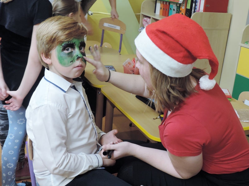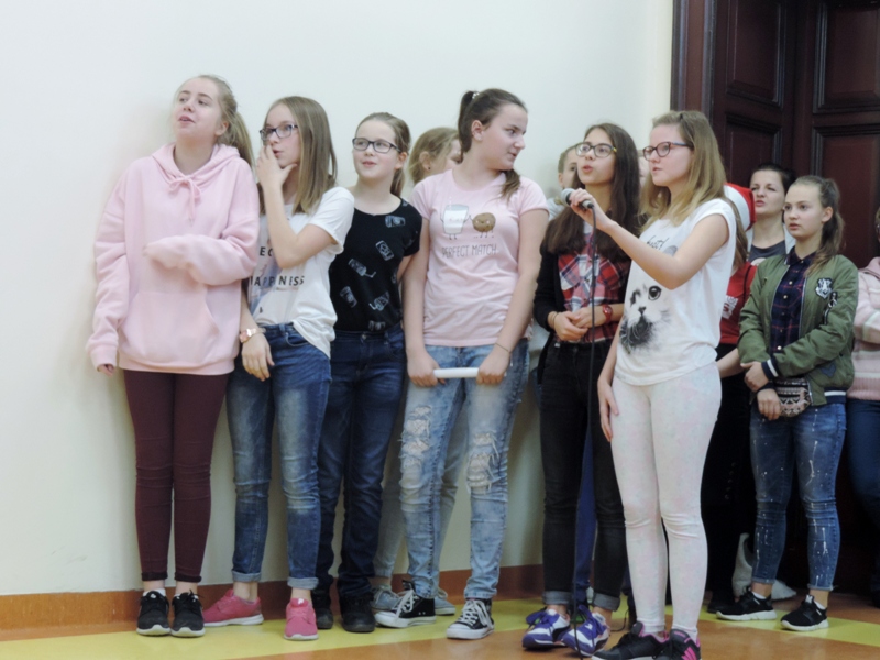 Tegoroczny dzień otwarty w naszej szkole był niezwykle bogaty w różne atrakcje. Rozpoczęliśmy to spotkanie w świątecznym nastroju, wspólnym kolędowaniem na sali gimnastycznej. Gdy zakończyliśmy anielskie śpiewanie, odwiedził nas Święty Mikołaj. Można było zrobić sobie zdjęcie pamiątkowe z gościem z dalekiej Laponii, co też chętnie czyniły przybyłe na dzień otwarty młodsze dzieci.