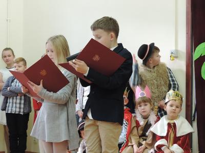 Dzieci wspaniale wcieliły się w role i zaprezentowały przed zgromadzoną widownią.