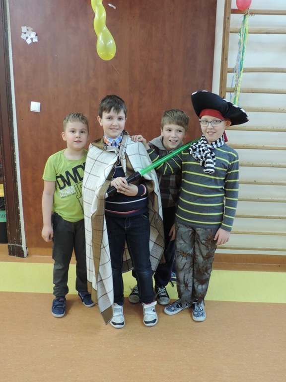 Maluszki czarowały przepięknymi strojami. W klasach IV – VI również znalazło się wiele osób w fantastycznych strojach. Podczas balu uczniowie uczestniczyli w różnych konkursach np.: taniec z balonikami, taniec z krzesełkami. Uczniowie klas IV-VI podczas swojego balu uczyli się tańca „Belgijka”.