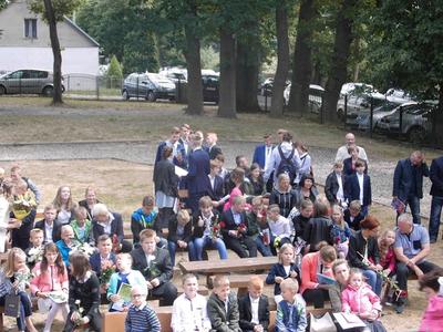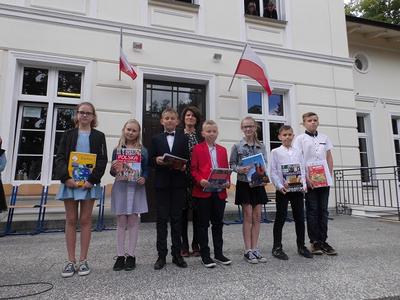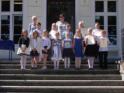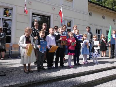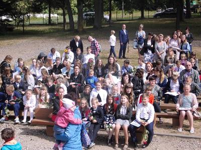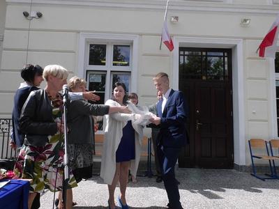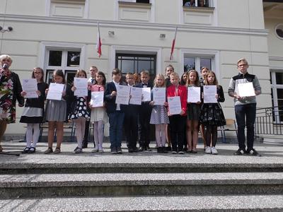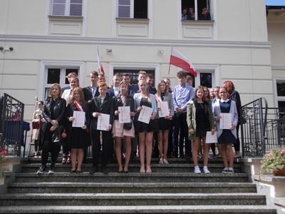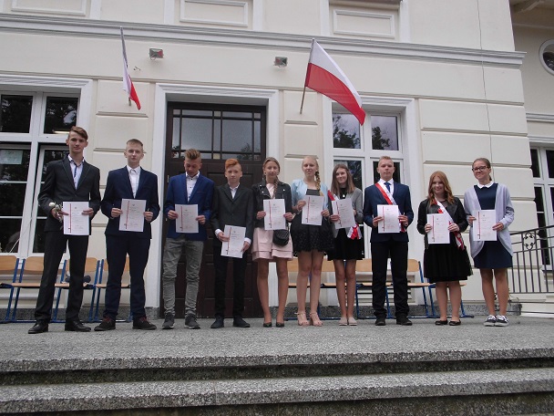 Zakończenie roku szkolnego 2017/2018 rozpoczęło się uroczystą Mszą Św. pod przewodnictwem ks. Proboszcza. Po mszy Pani Dyrektor wręczyła wyróżnionym uczniom świadectwa oraz nagrody książkowe. Dodatkowo uczniowie, którzy uzyskali średnie ocen powyżej 5,2 oraz wzorowe bądź bardzo dobre zachowanie, otrzymali stypendium za osiągnięcia w nauce. Uczennica Maja Orlikowska otrzymała nagrodę Wójta Gminy dla najlepszego absolwenta gimnazjum. Samorząd Uczniowski za poparciem Rady Rodziców i Rady Pedagogicznej przyznał nagrodę specjalną „Cichy bohater” uczniowi Błażejowi Grzywaczowi za wzorową postawę uczniowską i koleżeńską. Po odebraniu świadectw wszyscy z radosnymi nastrojami ruszyli na zasłużone wakacje. Życzymy dobrej pogody, bezpiecznego wypoczynku i ciekawych przygód podczas wakacyjnych wypraw. Do zobaczenia we wrześniu!