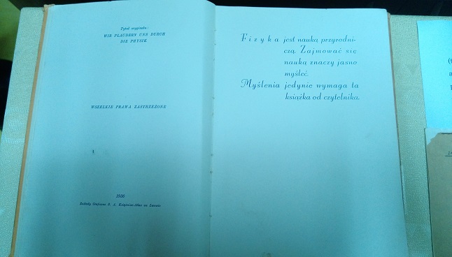 - podręcznik do przedmiotu fizyka z 1936 roku pt. „Fizyka na wesoło”;